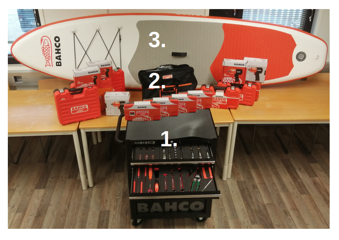 Tänään saimme Bahcon palkintosetin, se on todella hulppea. Yleiskilpailun voittaja saa itselleen Bahco C75-työkaluvaunun pienehköllä työkalusetillä. Toiselle sijalle pääsevä pokkaa…