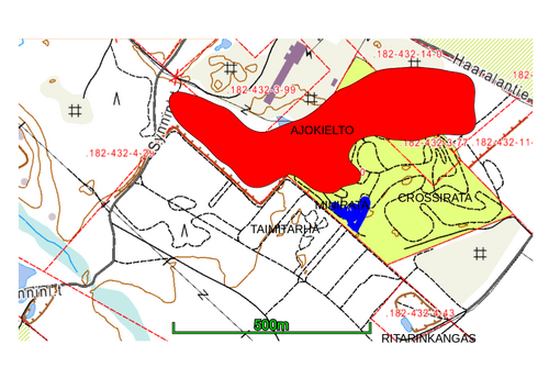 Ritarinkankaan läheisyyteen ei mitään asiaa ilman erillistä lupaa maanomistajilta. Karttakuvassa vaaleanpunaisena ajokieltoalue.