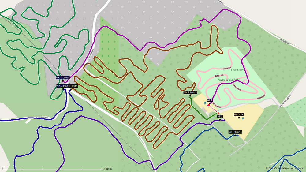 Siirtymää tietä vajaa kilometri ja maastoa pari kilometriä, jonka välissä piha-alue rajoitetulla nopeudella.