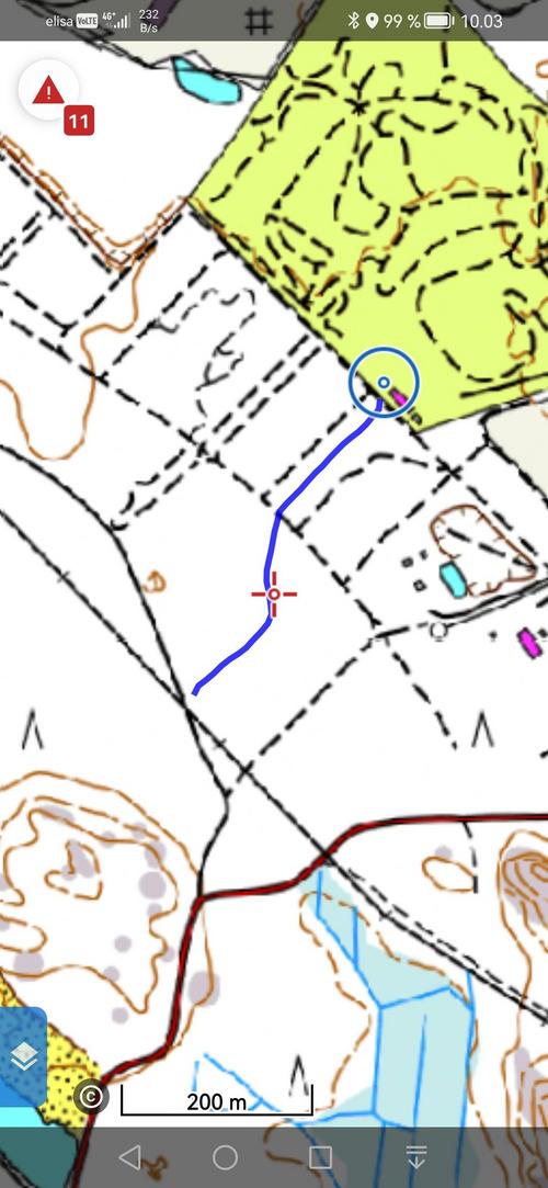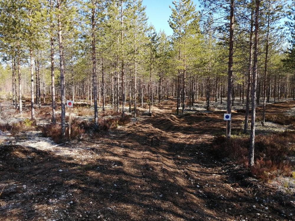 Crossiradalta kohti Näätämäentietä ja esim. Tupamäkeen on merkattu reitti pallomerkeillä, punainen vasemmalla ja sininen oikealla, näiden välistä. Reitti menee rajana, ettei tämän alueen, taimitarhan eteläpuolelle mennä ajamaan.